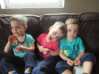 Tuesday morning the boys were all sleeping in their bed until about 6:10 when we went to wake them up. I will call that semi-successful. This was the longest they've slept in since we started the transition and maybe even before that!